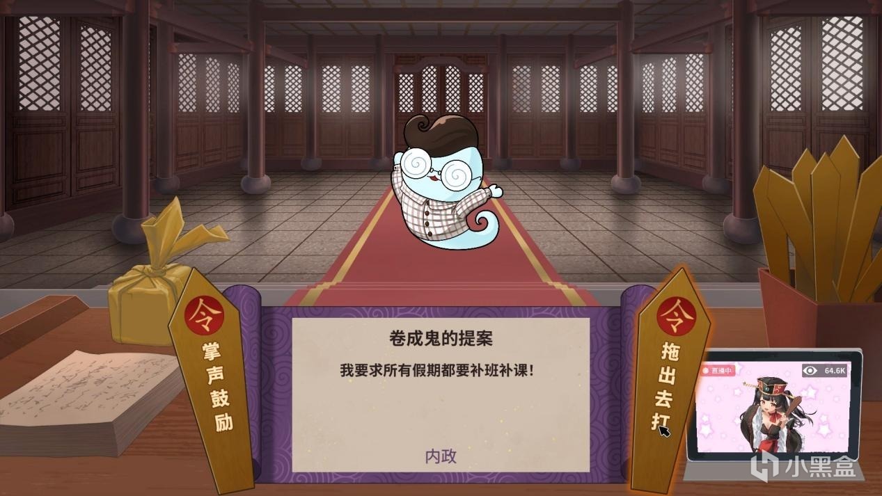 而说干就干的代价,是地府官的日常差事都被推到了我们头上,也就带来了局外的日常玩法:可以在衙门中审核各鬼的提案,并根据自己的意愿发令。而最抽象的环节,大概也就是这些形形色色的鬼,和各种无厘头的提案。