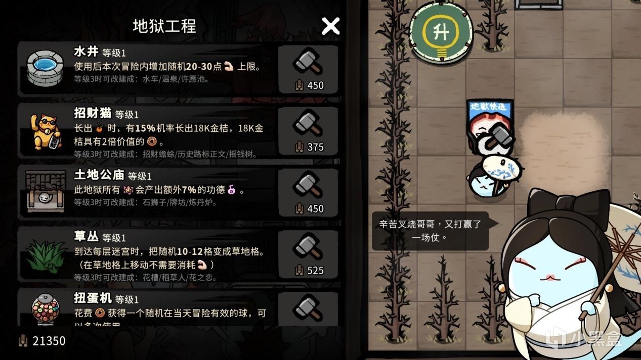 (2)提供资源或者局内成长的功能房。比如厨房可以获取附带能力加成的食物,换衣间可以拿到持续多个房间的被动效果,忽屎鬼、丑鬼和生字妖可以积累资源和收集词条,而神秘商店则可以通过花钱来买到永久性的独特成长道具。