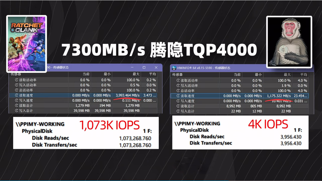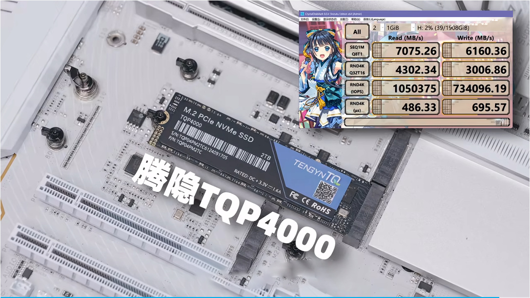 这里用的游戏盘就是一块性价比很高的Gen4 SSD,隐腾TQP4000,7300MB/s的读取速度,1000+KIOPS的小文件IO性能搭配RTX 4090毫无压力。