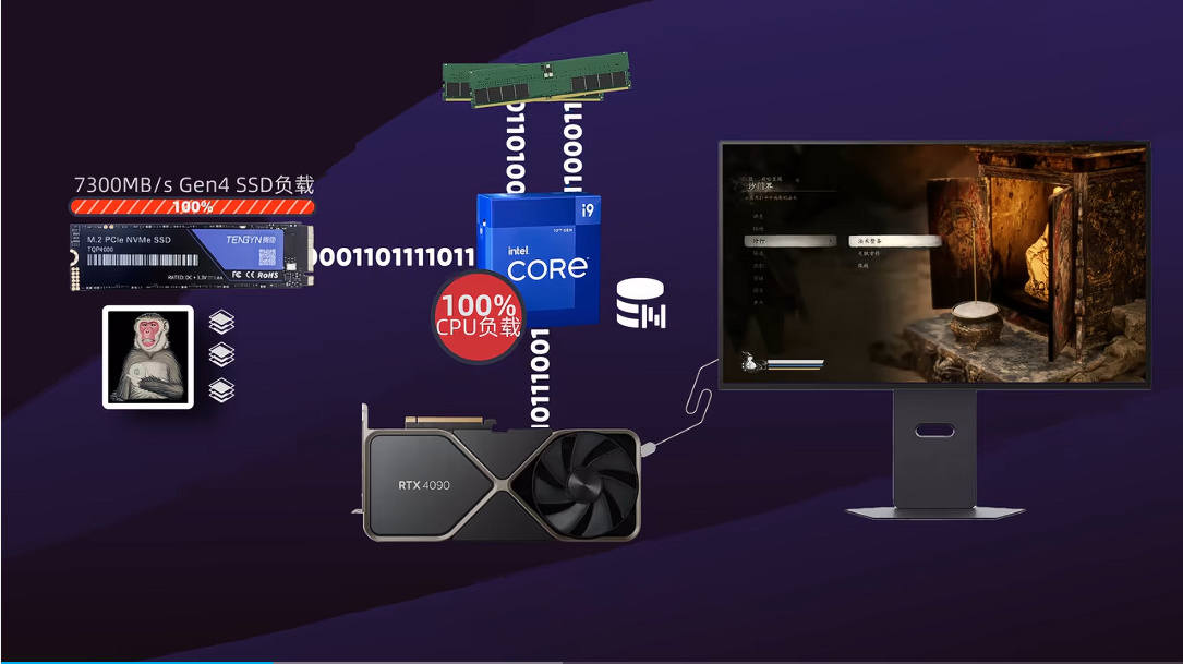 所以游戏读取的问题不只是载入时多等几秒,过高的CPU占用和显卡等数据不仅会影响到游戏的帧数还可能会引发严重的卡顿问题,虽然这套机械硬盘时代的读取流程早就无法适应当下4k丶高画质丶高帧率游戏的需求啦。