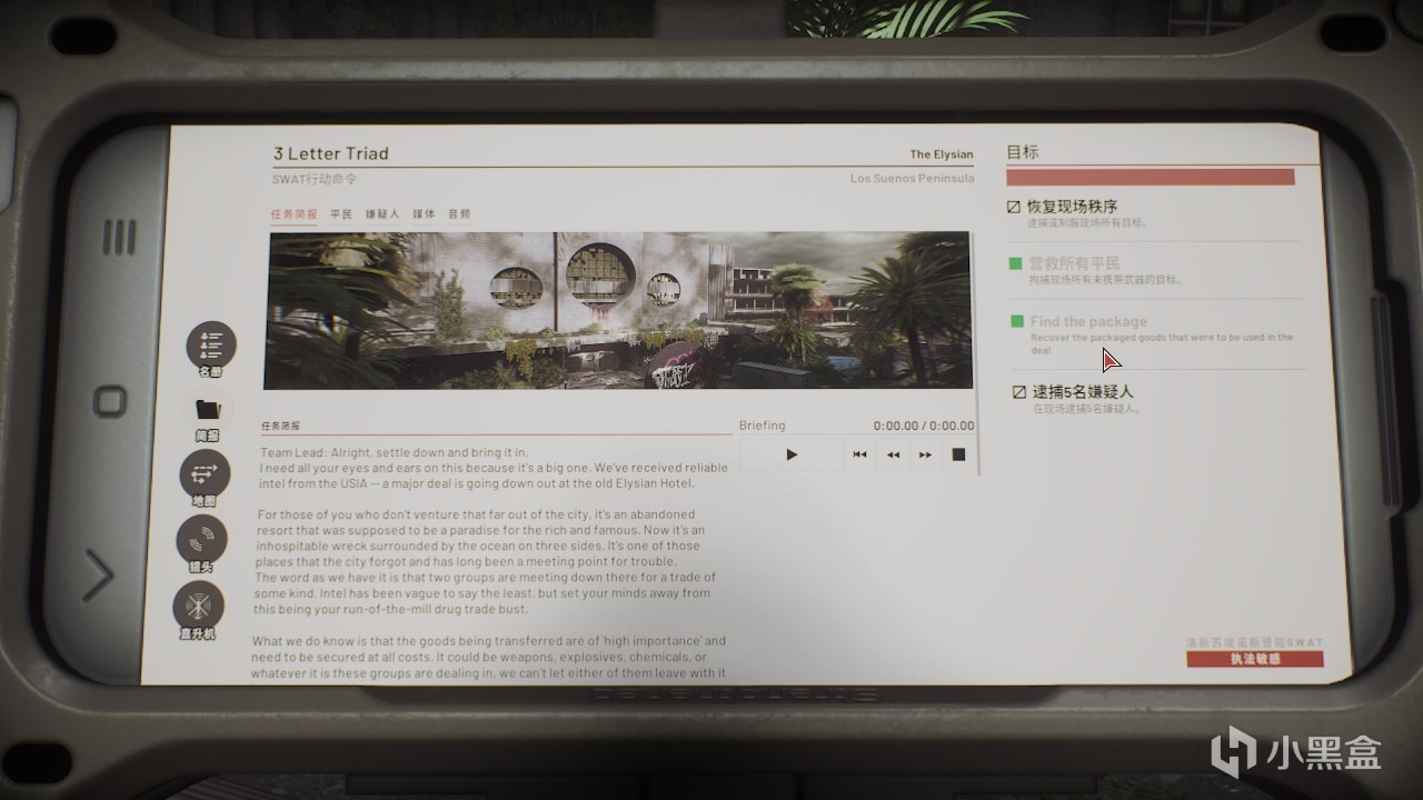 “暗流湧動”的三個關卡,其任務和以往相比沒太大的出入。玩家執行特警任務的作戰目標依舊是以下幾項內容,恢復現場秩序,營救所有人質,蒐集特殊物品,逮捕犯罪人員或者重要人物。雖然只要完成全部的主要任務就可以成功返回,但是在執行任務過程中,還是會出現各種各樣的意外和偏差。其中,一小部分的問題還是不大,例如將恐怖分子擊斃/擊倒(只要保證主線任務的數量足夠即可),畢竟在執行任務過程中敵方人員都用火力襲警了,在保護自身和人質的情況下將他們突突突沒有問題吧。那麼,還有一部分問題就很嚴重了,例如營救人質過程中,因爲槍戰一不小心把人質給噶了,任務也就寄寄了,這裏真不可能出現“爲了防止人質被綁匪擊殺,所以警方提前一步擊斃人質”的真實。