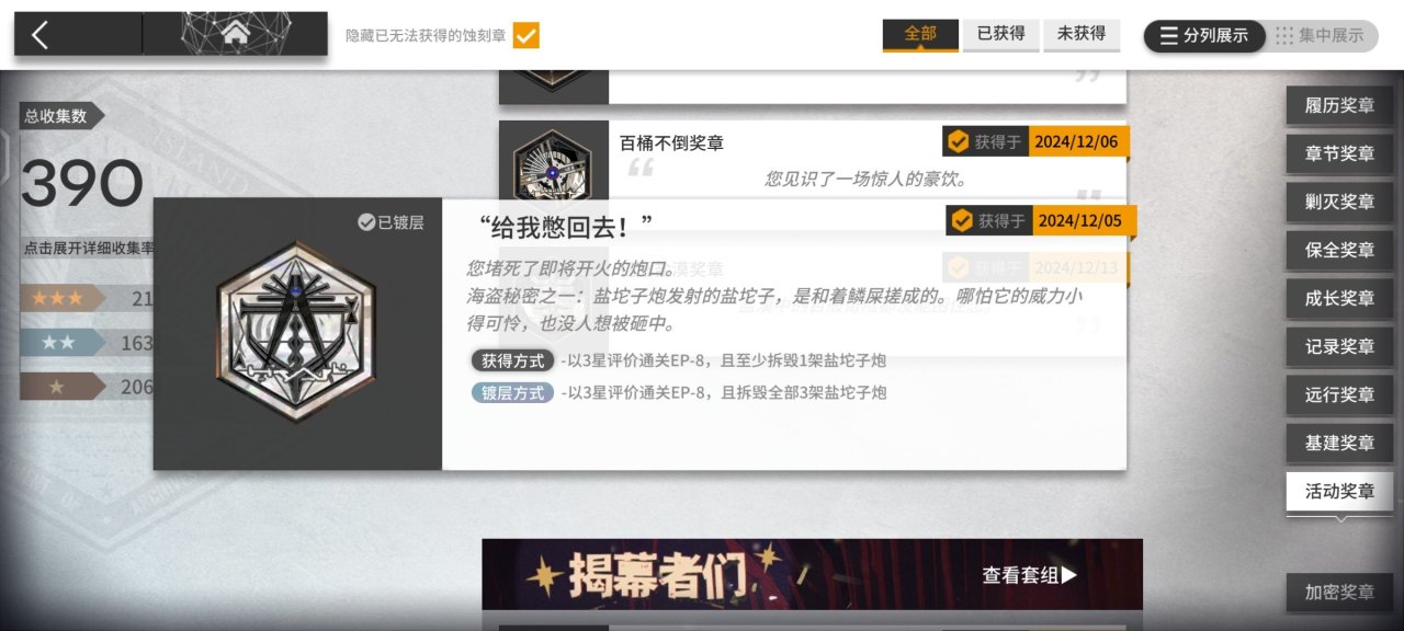 這個看自己收藏慾望了,即使是這次因爲練度沒拿全的小登們也不用擔心,明年復刻可以接着拿,但是等復刻結束進插曲別傳成爲常駐後就拿不了了老登們也可以檢查下自己漏沒漏哪些有額外條件的章子