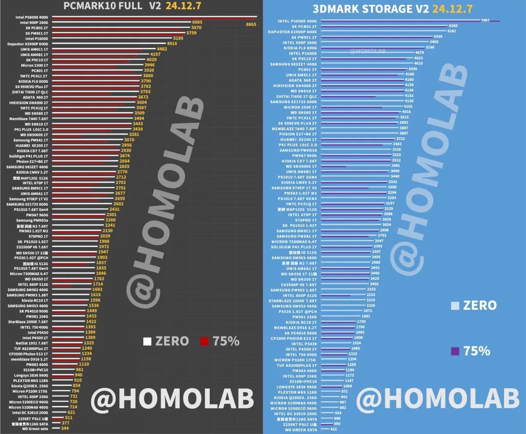 在此,我們附上由@HOMOLAB 製作的榜單。建議消費者們結合實際需求,綜合考量硬盤效能。
