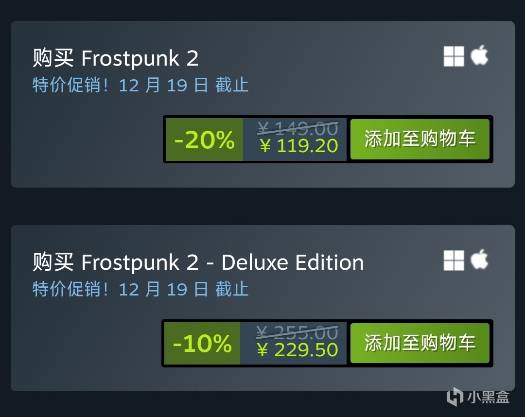另外如果最近对《冰汽时代2》感兴趣的玩家也可以入坑了,因为最近冬季促销《冰汽时代2》也开始折扣促销了。游戏现在正以8折优惠促销中,如果更感兴趣还可以购入豪华版的9折促销!