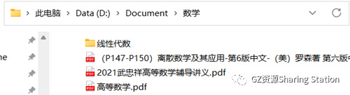 上面有一個文件路徑,所得是data(D)>document>數學,意思就是我的數學資料放在我的數據盤D的Doument文件夾的數學目錄文件裏面;