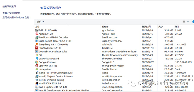 1)打開控制面板,找到程序於功能,左下角的搜索界面是可以直接搜索的;