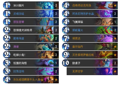這一套比較冷門,思路是疊甲疊甲再疊甲,利用脆骨海盜+達克馬洛+防護水晶進行疊甲,下基爾加丹,用後期的超大身材惡魔來鋪場。