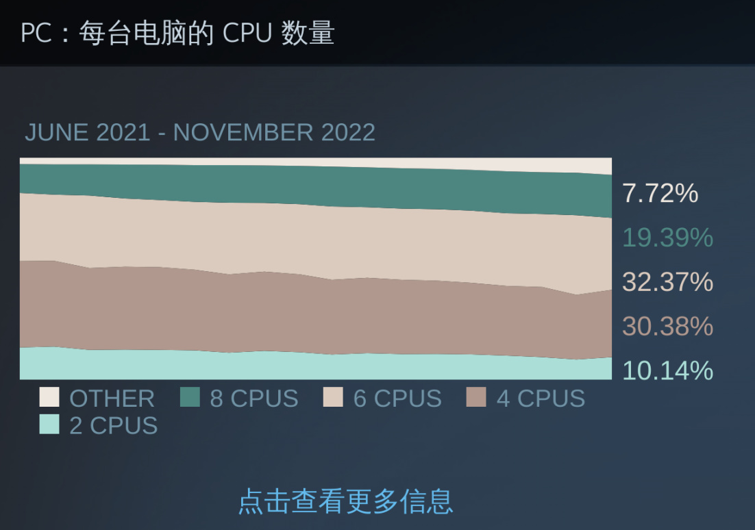 今日Steam官方公布了2022年12月Steam硬件和软件调查报告,从显卡、处理器、操作系统等各品牌和型号的占比展示了当前Steam玩家的整体情况,以下为本月报告详情。