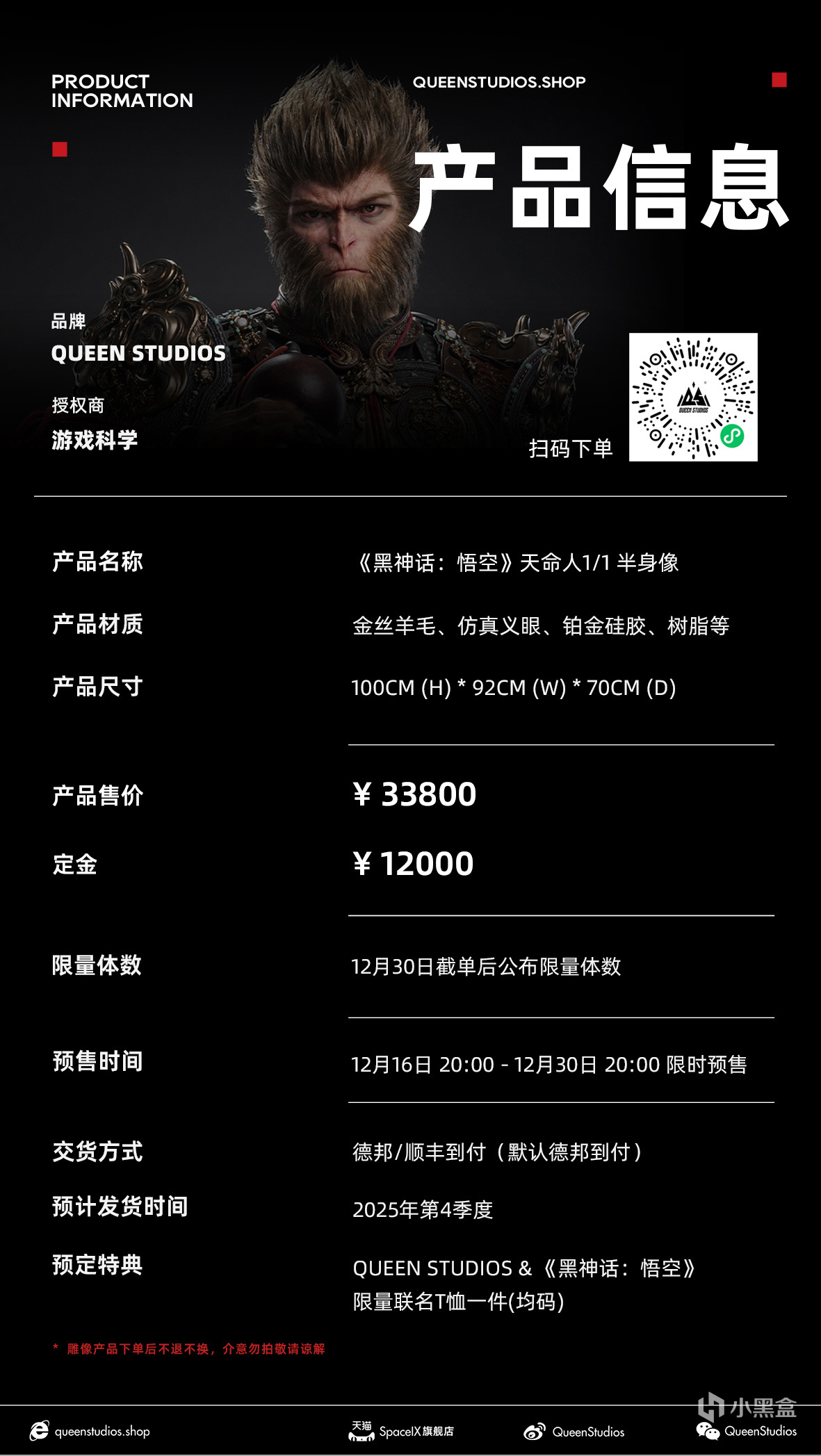 预定特典:QUEEN STUDIOS & 《黑神话:悟空》限量联名T恤一件(均码)