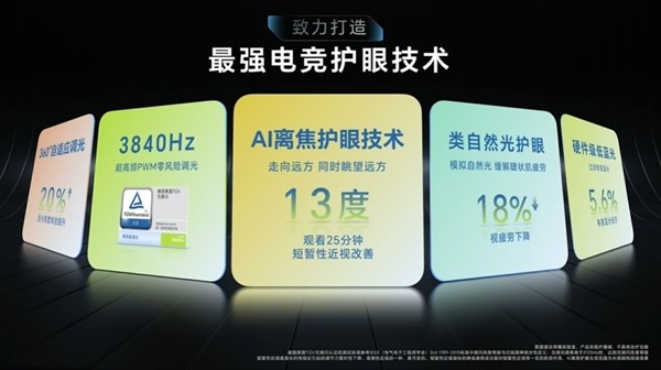 此外,榮耀還爲其配備了多種護眼技術,包括支持AI離焦護眼、類自然光護眼、360°自適應調光技術、AI助眠顯示、360度全場景暈動舒緩顯示。