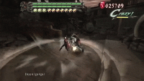 而要談論最能代表《鬼泣3》動作系統的創新設計,毋庸置疑,當屬連招系統中新加入的“CrazyCombo”機制。Crazy Combo,瘋狂連擊,也可以理解爲“瘋狂節奏”,指的是某些技能需要瘋狂連點某個按鍵來觸發,使特定的招式得到進化,並派生爲強力的招式,觸發時角色身旁有白光特效,之後角色將會釋放出高頻率的“CrazyCombo”攻擊。
