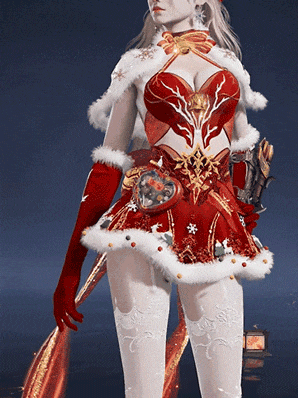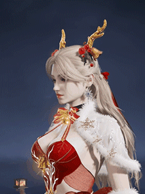 聖誕主題的經典搭配,衣服主體是紅色絲絨質地,披肩上雪花元素和小鈴鐺的配飾爲整體造型增添俏皮感。金色的頭髮搭配精緻的鹿角,少女似小鹿般靈動可愛。