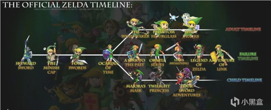 ④ 作爲首部3D塞爾達,時之笛在塞爾達系列中的地位也無可替代,在時之笛出現之前,塞爾達系列的時間線堪稱遊戲史上系列作品中最混亂的時間線之一。在時之笛推出後,塞爾達的時間線總算清晰起來,分成了3條不同的時間線,分別是幼年林克、成年林克和時之笛中林克戰敗的IF線,將早期塞爾達作品的時間線成功理清。不過任天堂並未解釋我們熟知的野炊和王淚屬於哪個時間線,只是籠統地說是發生於萬年之後。