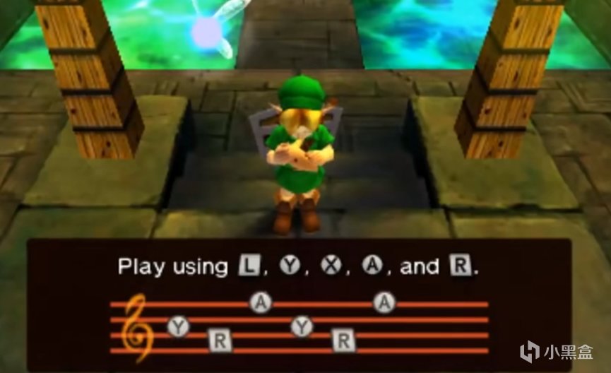 ③ 時之笛也是第一個將冒險遊戲的音樂融入遊戲玩法中的作品,此前的同類遊戲的音樂僅僅是簡單地在遊玩過程被播放,而時之笛則是可以彈奏這些曲子。標題中的時之笛就說明了本作與笛子息息相關, 在時之笛中,玩家可以通過按對應鍵演奏樂曲來解開各種謎題。