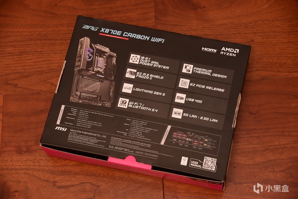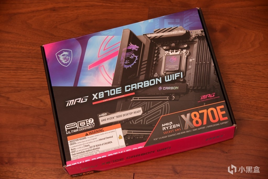 微星MPG X870E CARBON WIFI主板採用了暗夜龍族的包裝風格,可以完美支持AMD的9000系列CPU,也是微星品質的體現。