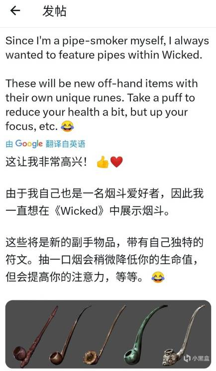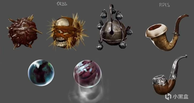 還有兩張新武器的原畫圖公佈。從造型上看,一個是鋸齒長柄斧,看樣子應該是個雙手武器。武器性能方面應該也是以慢速高攻擊爲主。而另一個是副手武器寶珠和菸斗。根據托馬斯的爆料,菸斗可以在降低生命值的前提下提高注意力。寶珠方面雖然並未爆料什麼重要消息,但結合造型和早前火把的測試上看,大概率是作爲副手輔助道具,內容包括常規被動效果和特殊屬性方面的提升
