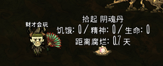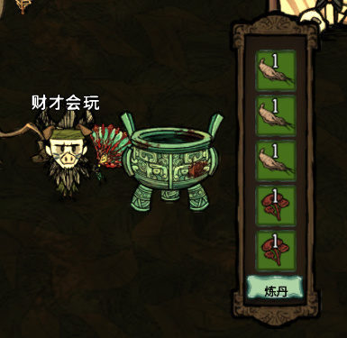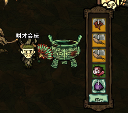 陰魂丹:需在青銅鼎中煉製,食用後2天內免疫低san產生的影怪造成的傷害。煉製配方:靈芝*1+人蔘*2+頭顱*1+紫寶石*1