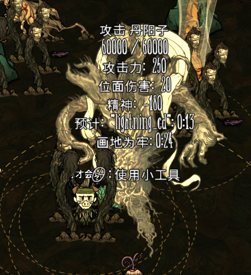 獨眼魔:在第28天生成在角色周圍,生成時,角色有提示語,擊殺後過100天再次刷新。階段一,當血量>40%時,攻擊造成80傷害,每隔18s發動飛撲,造成120點傷害。