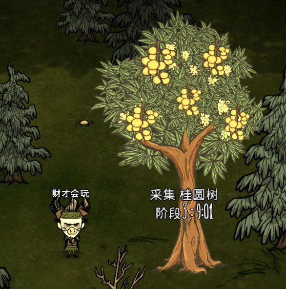 桂圓樹:在森林地形生成,擁有4個階段,移植後需累計施肥3天進入第一階段第一階段,需三天成長,一天一施肥。第二階段,桂圓樹開花,仍需三天生長。第三階段,果實成熟可以採摘,三天後進入第四階段。第四階段,仍可以採摘,採摘60%概率掉落桂圓樹枝,砍伐掉落木頭*3,桂圓*3。