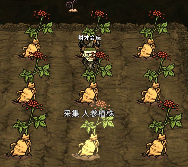 人蔘:可通過耕地種植,12天后從幼苗階段成長爲結果階段,摘取後退回幼苗階段,12天成熟期。果實保質期5天,可入鍋,不可烤熟。種子保質期7天,由玄牝兌換種子。