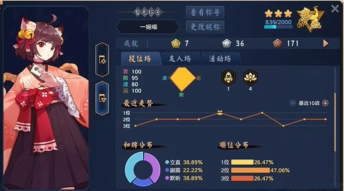 4.新增「和牌分佈」、「順位分佈」,可查看近100場對局的相關數據統計。