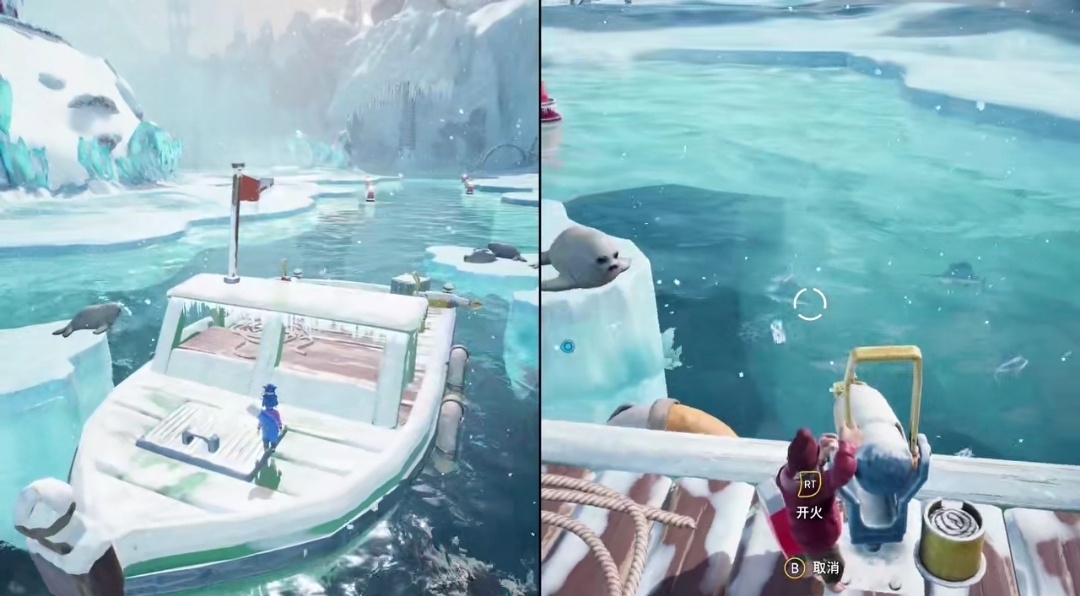 攻略:拿魚叉抓魚,並餵給海豹!