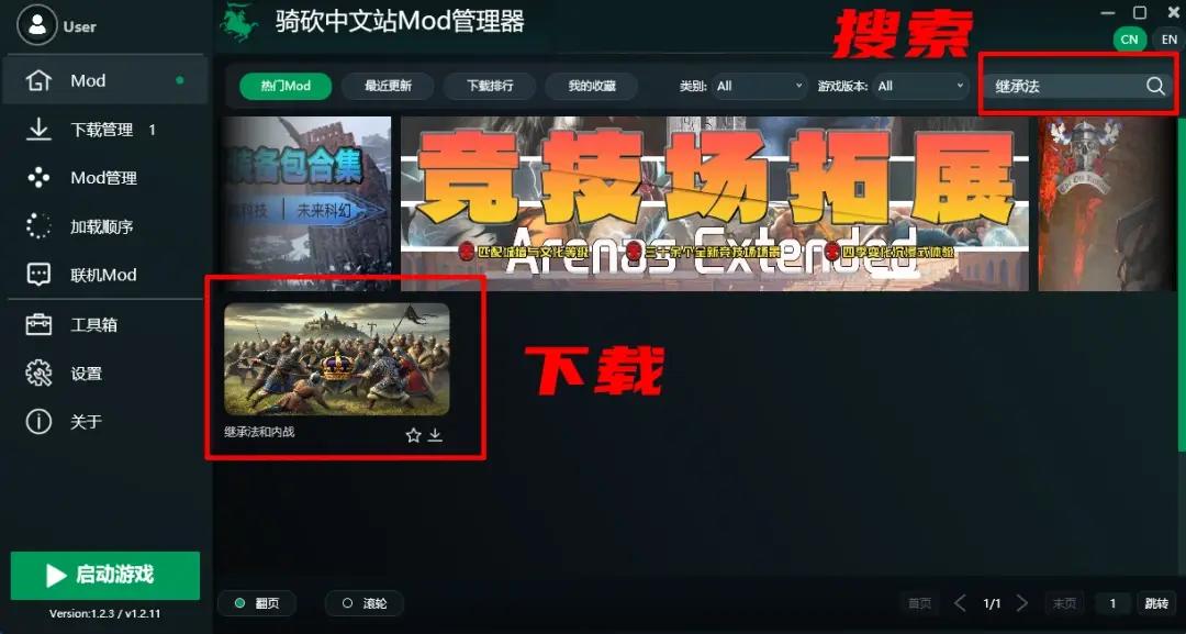 也可以直接百度搜索“騎砍中文站 下載中心”,進入下載站後搜索“繼承法與內戰”進行下載。