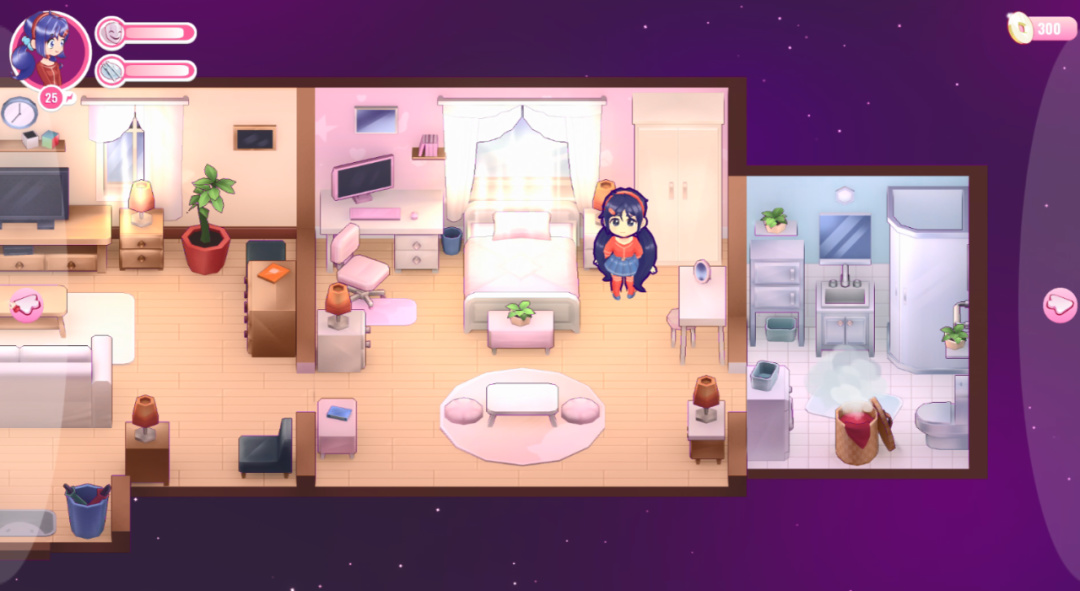 遊戲開始,就來了個戲中戲。玩家扮演的男主將在遊戲中玩一款美少女養成遊戲。總之就是幫一個2D小人幹這幹那,比較無聊,但確實是養成......玩到這裏時我心想:“就這?是不是又被賽博詐騙了?”