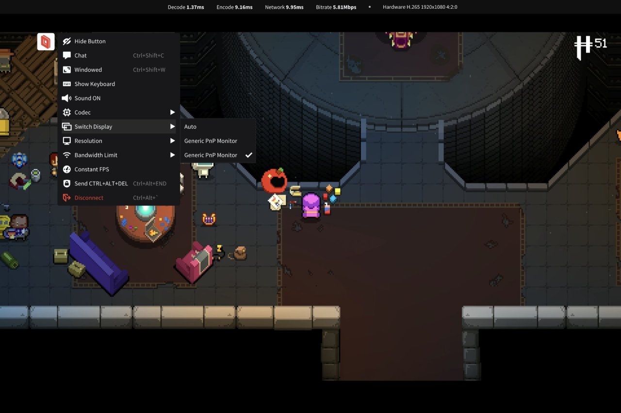 配合上面的Coop View使用Parsec或Sunshine远程串流时,主机端和客户端可以用各自的键鼠进行操控。