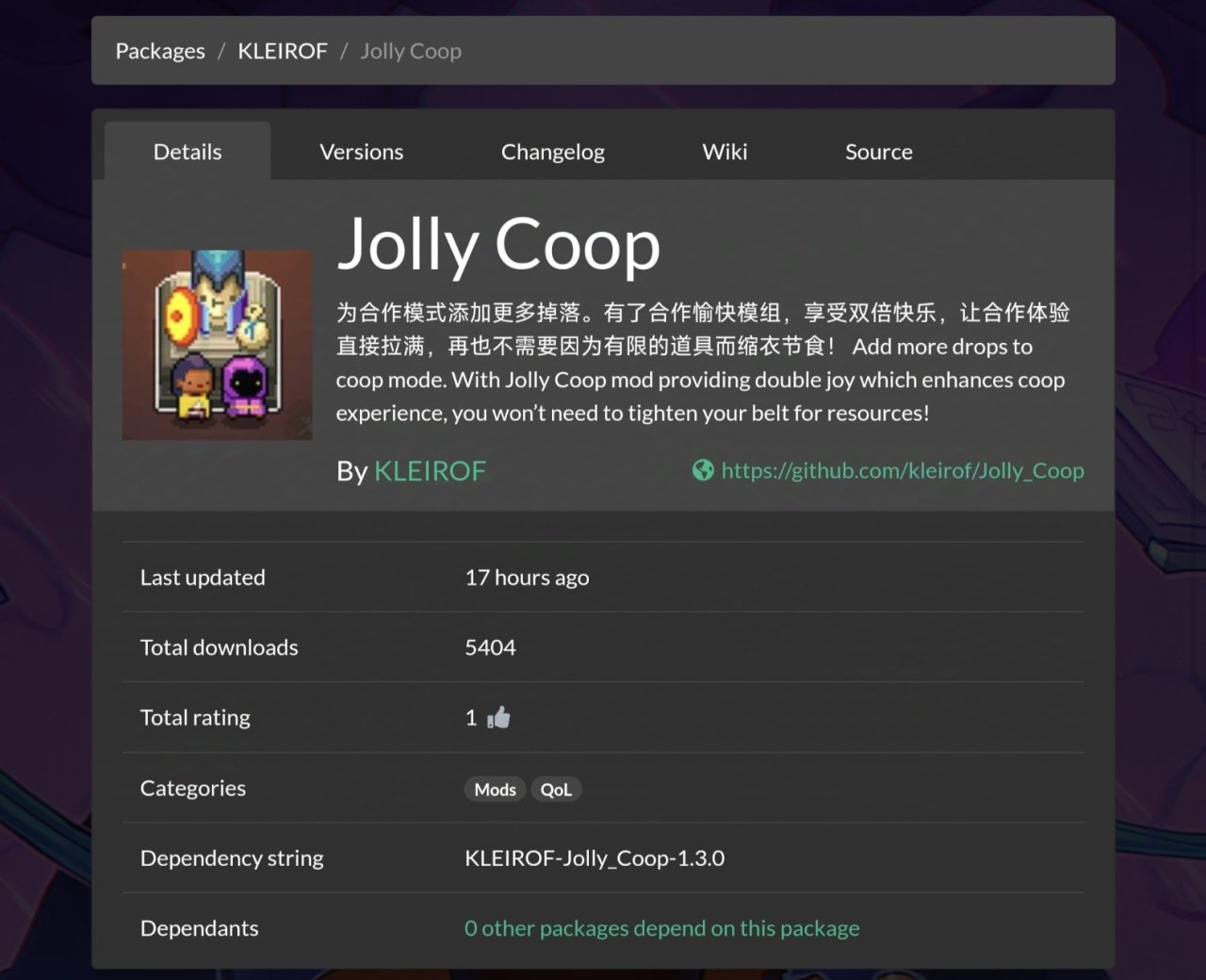 原版双人模式的物品是非常稀缺的,开箱子的物品、Boss奖励只能分配给一个玩家,彩虹模式也只有一个箱子。为了让两个玩家都有较好的游戏体验,Jolly Coop模组于23.8.23发布。模组提供了合作模式的掉落均衡,功能有: