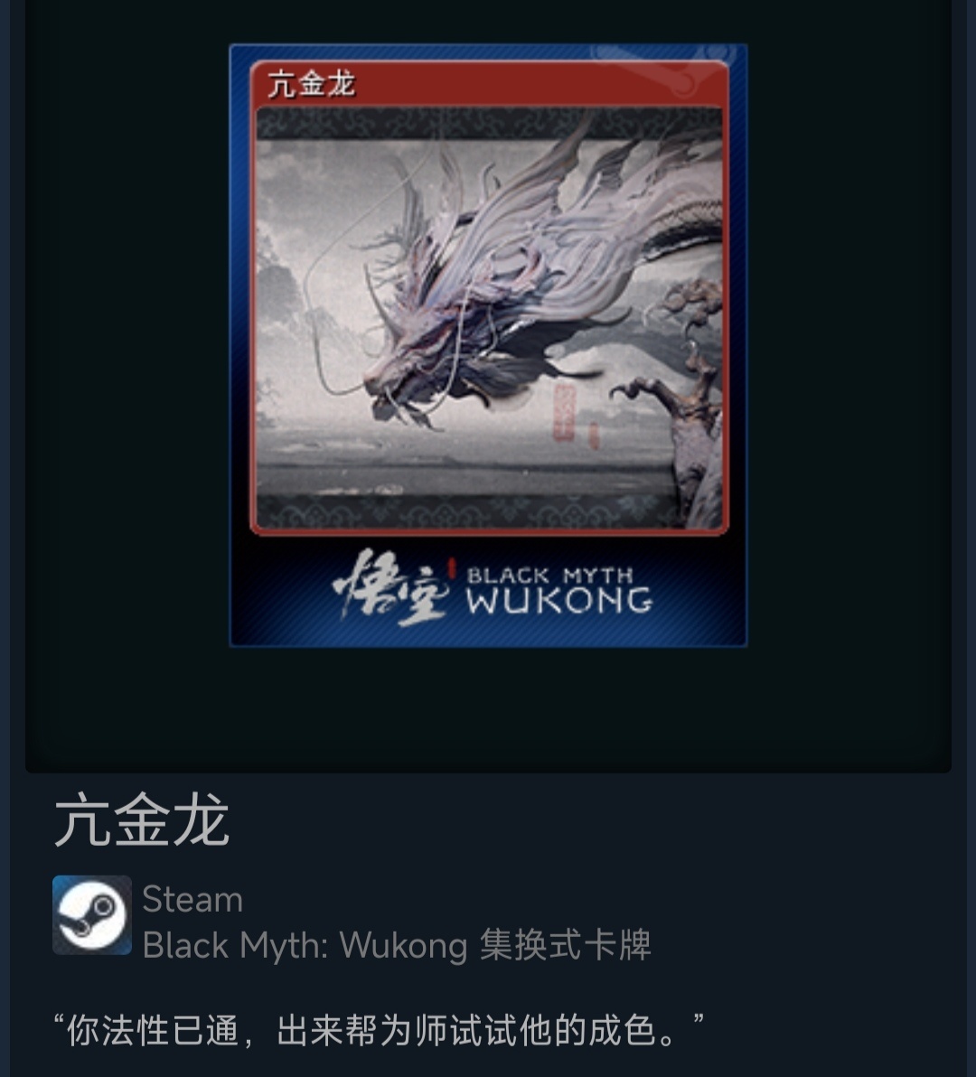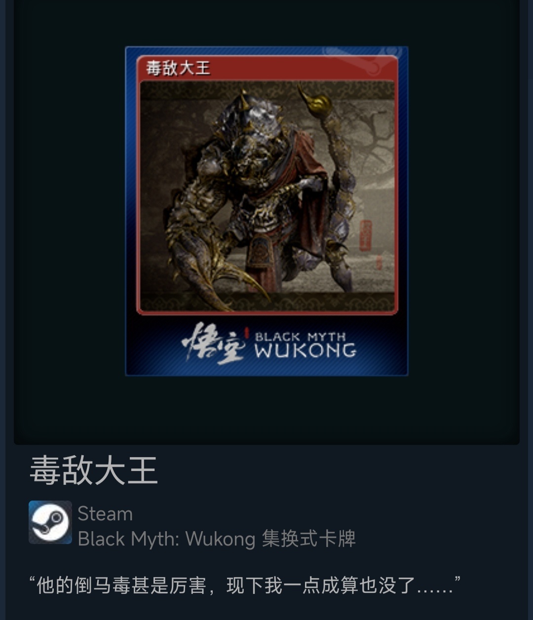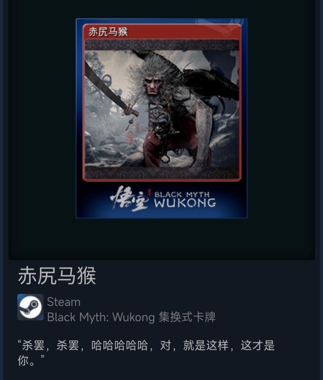 今日,黑神话悟空更新了steam社区物品,包含:集换式卡牌、徽章、个人资料背景和聊天表情,其中个人资料背景和聊天表情上架了点数商店