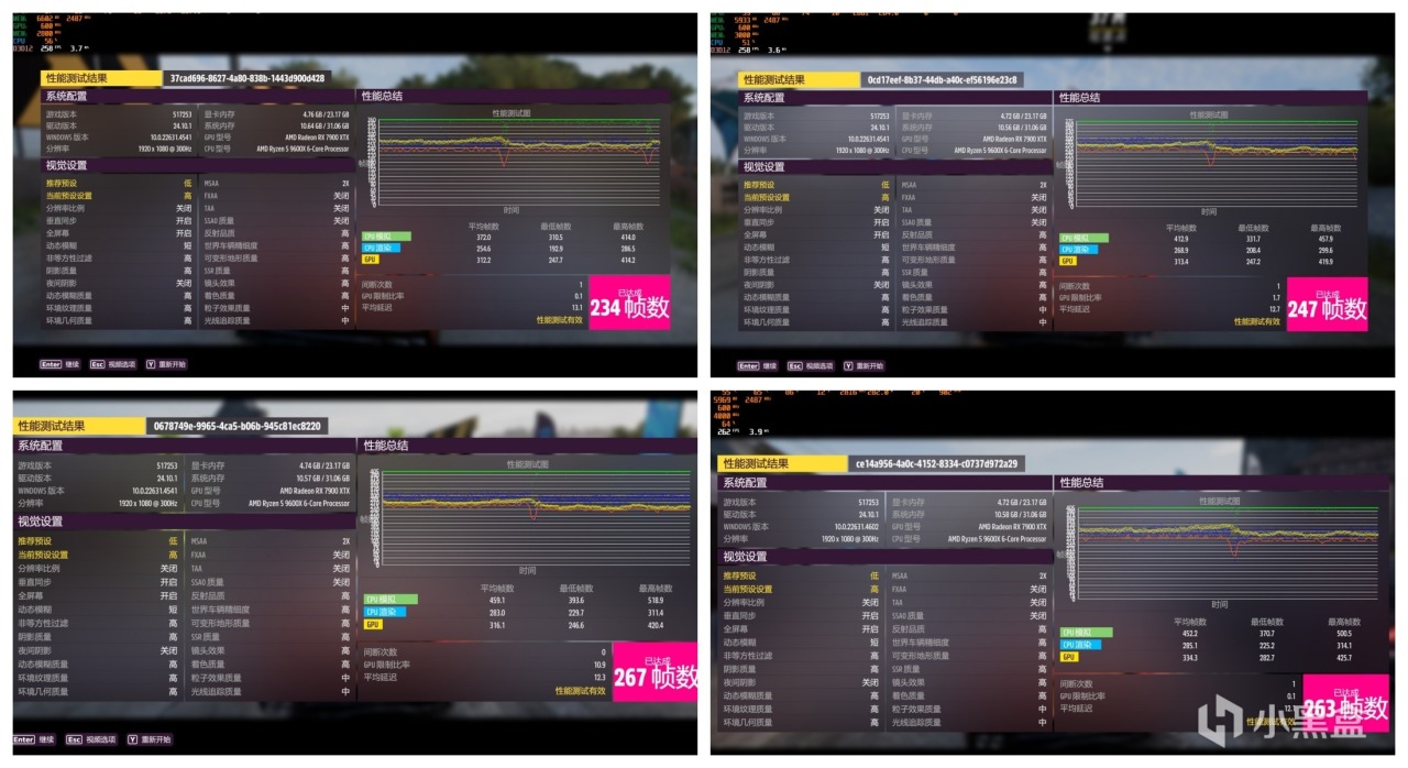 看下地平线5里的内置测试结果。默频5600MHz下,平均帧数CPU模拟372,CPU渲染254.6。一键EXPO 6000MHz下,平均帧数CPU模拟412.9,CPU渲染268.9。一键EXPO 6000MHz+调小参,平均帧数CPU模拟459.1,CPU渲染283。超频到8000MHz下的时候,平均帧数CPU模拟452.2,CPU渲染334.3。