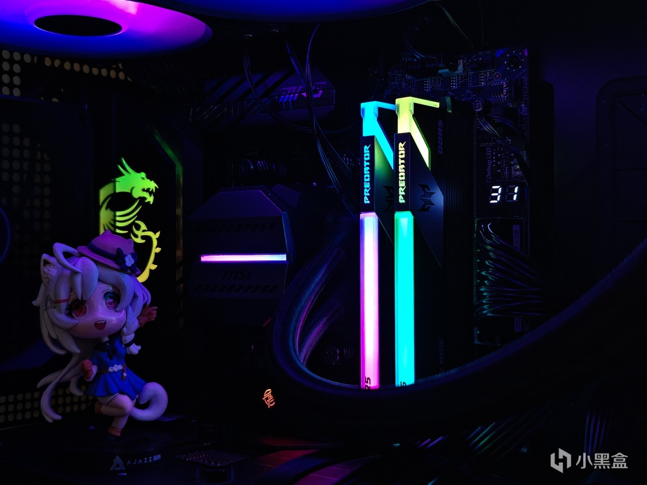 启动电脑,这款宏碁内存条泛出了五颜六色的光,非常漂亮。上面有PREDATOR的镂空透光字样,非常醒目。