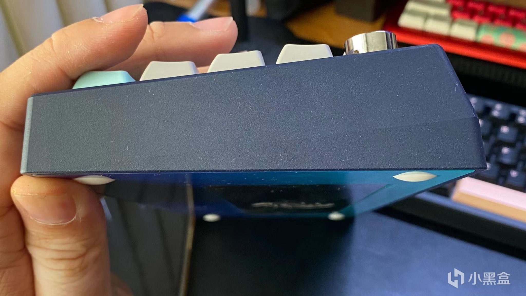 外壳这里我这个是一个龙胆蓝的配色,背板我个人感觉还是不错的,套件整体的分量相对于我之前那把来说是明显的增加了 。
