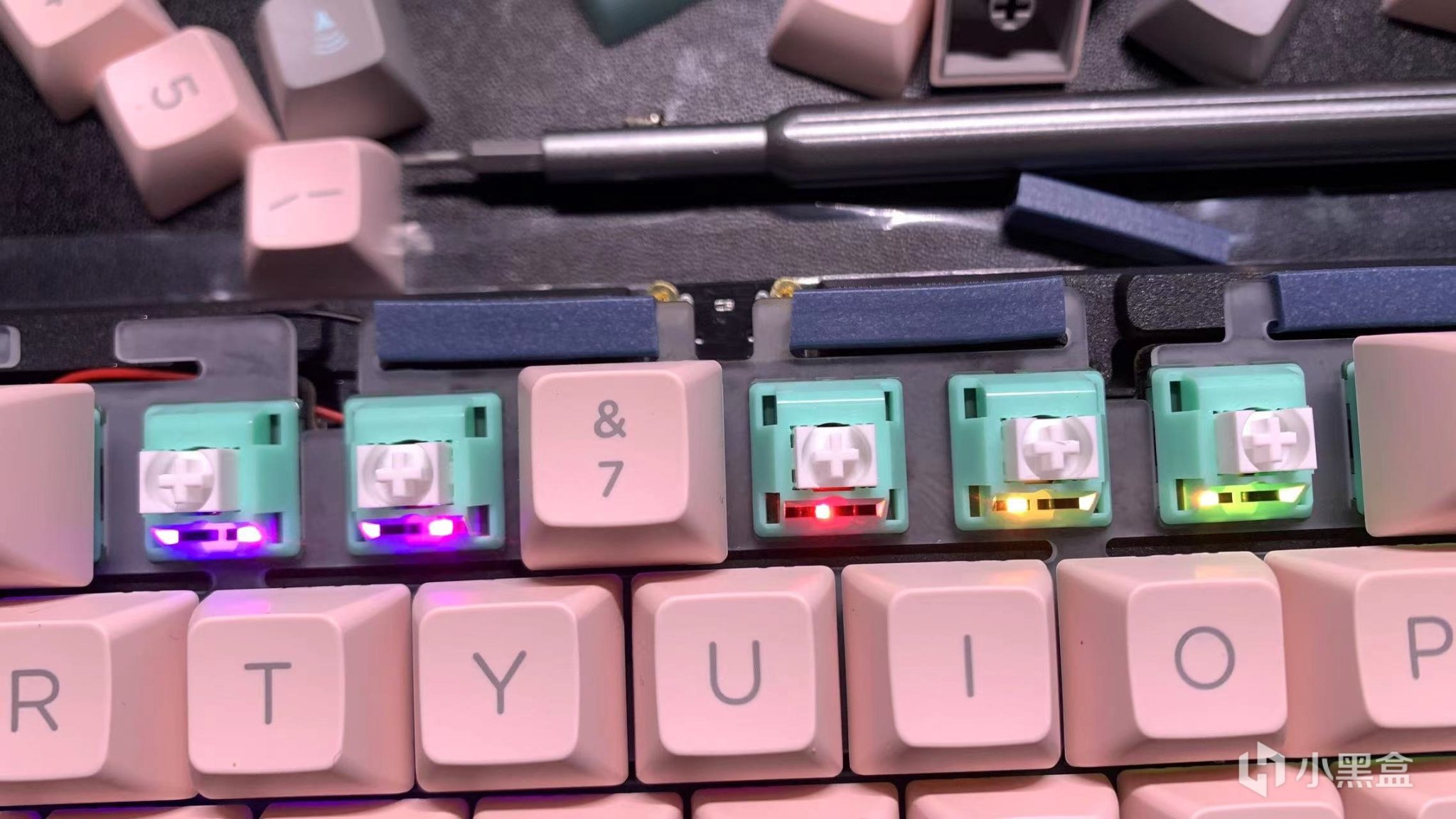 这个pcb采用的是一个下灯位的设计,这样一来,很多朋友不是喜欢用侧透键帽嘛,这把键盘也能用。(不知道细心的盒友有没有发现,其实这次v2的pcb相对于之前的pcb来说还增加的灯珠。)