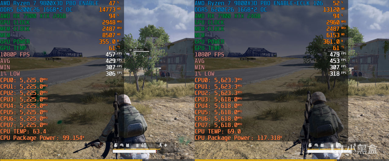 銳龍7 9800X3D eCLK 106 & PBO 2+DDR5 6200C26平均幀數913fps,1%LOW幀數305fps