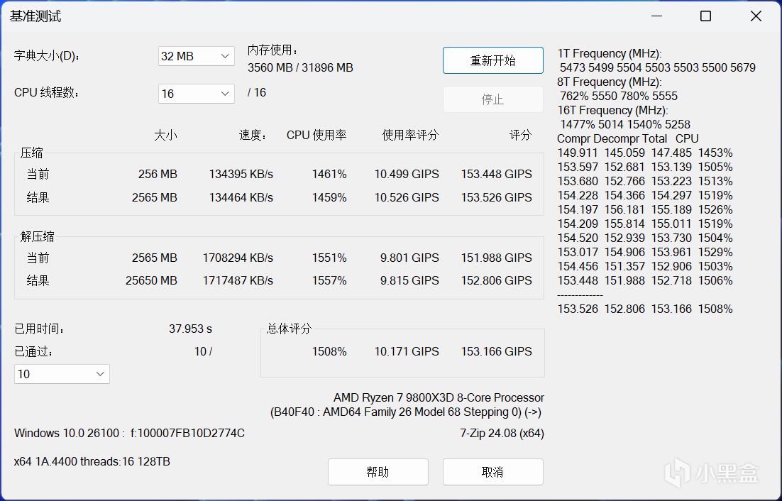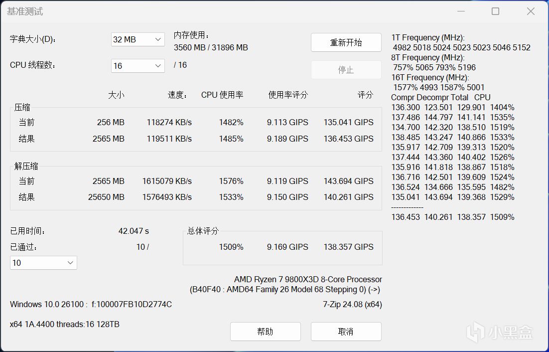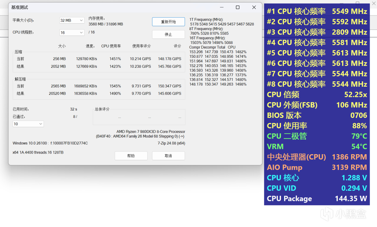 7-ZIP基準測試,銳龍7 9800X3D+DDR5 6400C30-38-38-88 EXPO