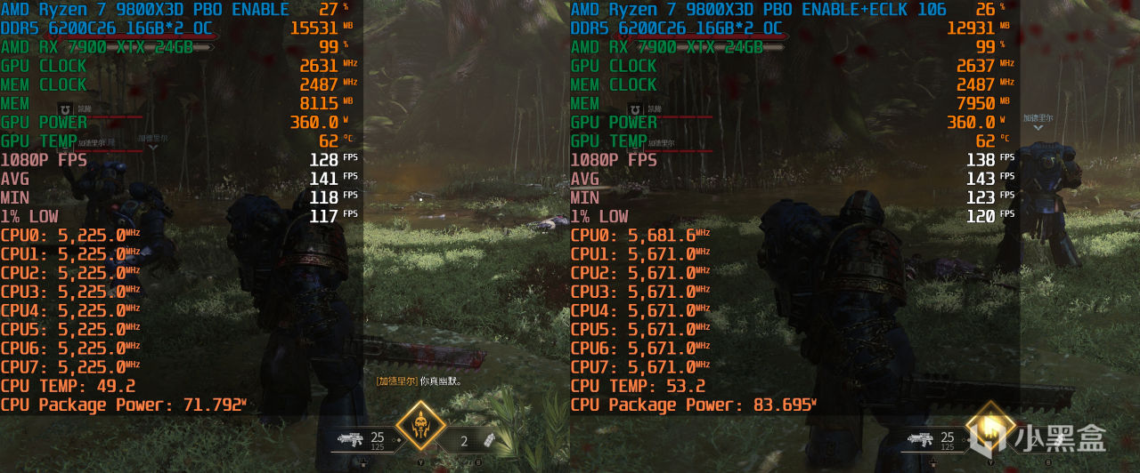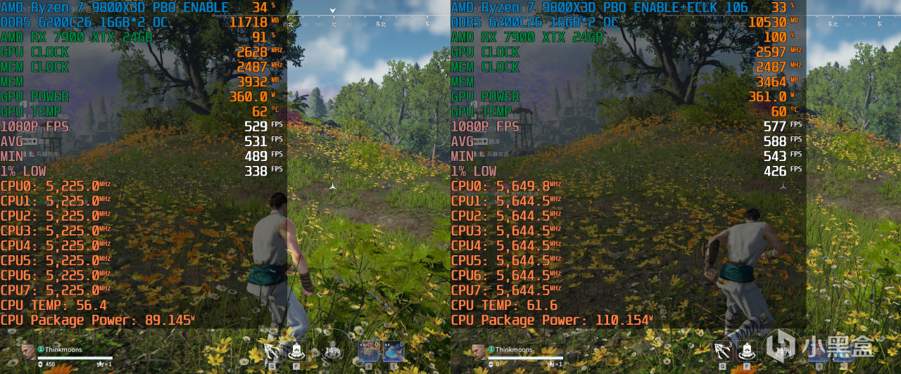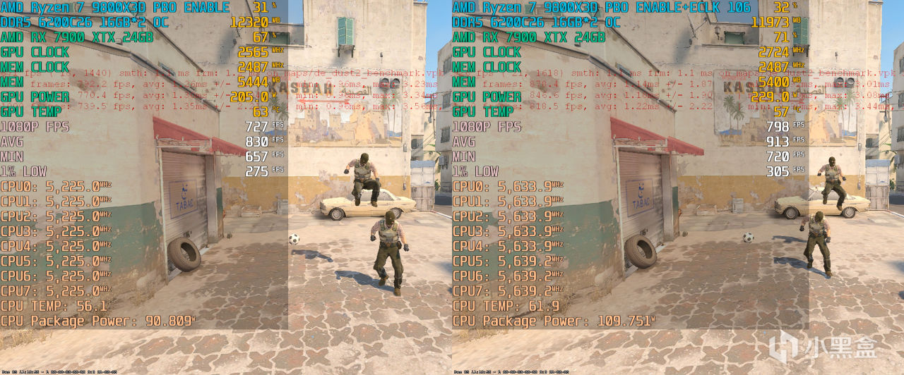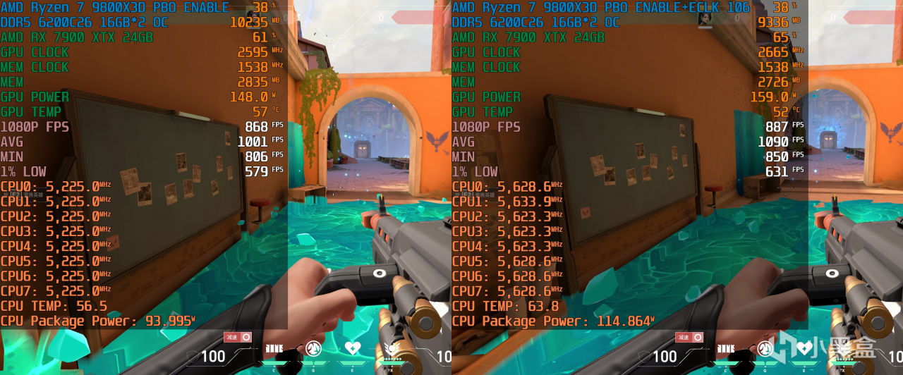 銳龍7 9800X3D eCLK 106 & PBO 2+DDR5 6200C26平均幀數1090fps,1%LOW幀數631fps