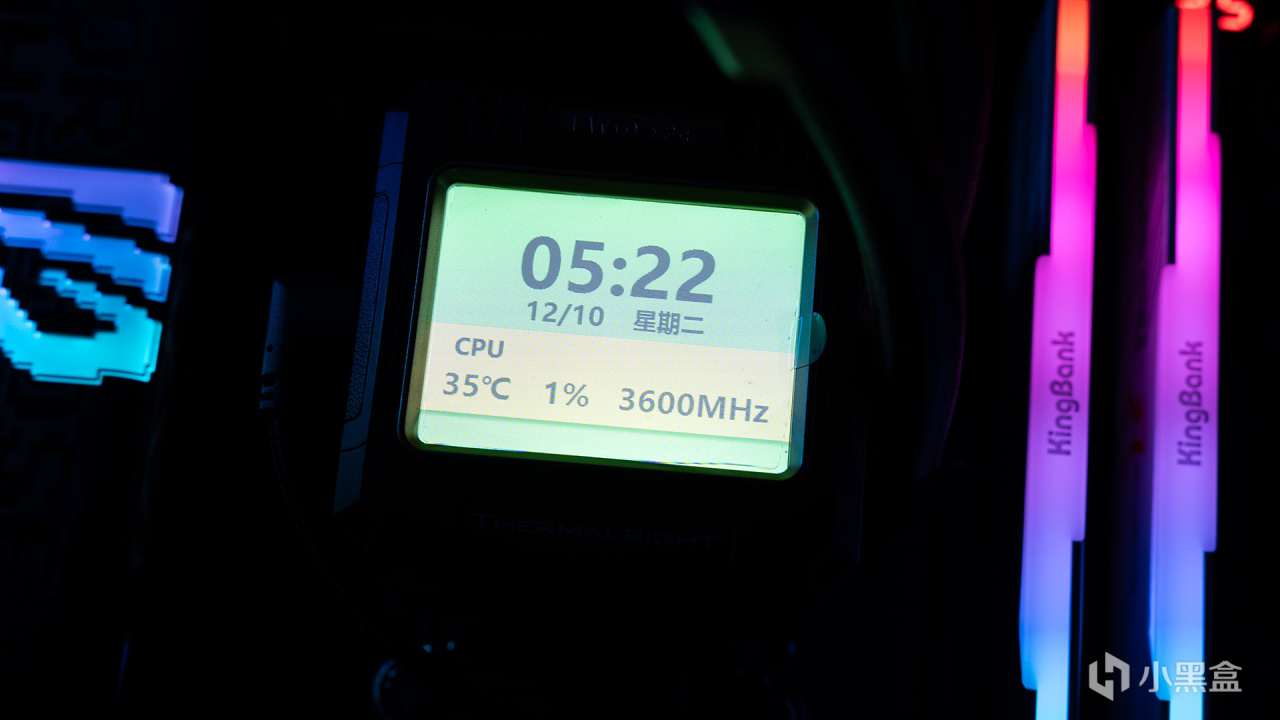 FW420寒冰裝甲採用黑金系風格冷頭,內置COREV1.0獨立水泵框架,還有類似格柵的設計,冷頭上配備磁吸式模塊化可拆2.4英寸顯示屏,配合TRCC軟件可以自由顯示各種圖案和文字,也能監測硬件運行狀態。