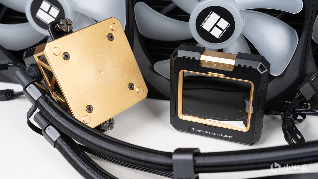 FW420寒冰裝甲顧名思義就是配備了更高規格的420冷排,厚度和標準360冷排倒是一致的27mm,更大面積的散熱鰭片面積無疑可以提升散熱效率。出廠狀態下風扇已經預裝,附贈導水管卡扣也能更好走線。