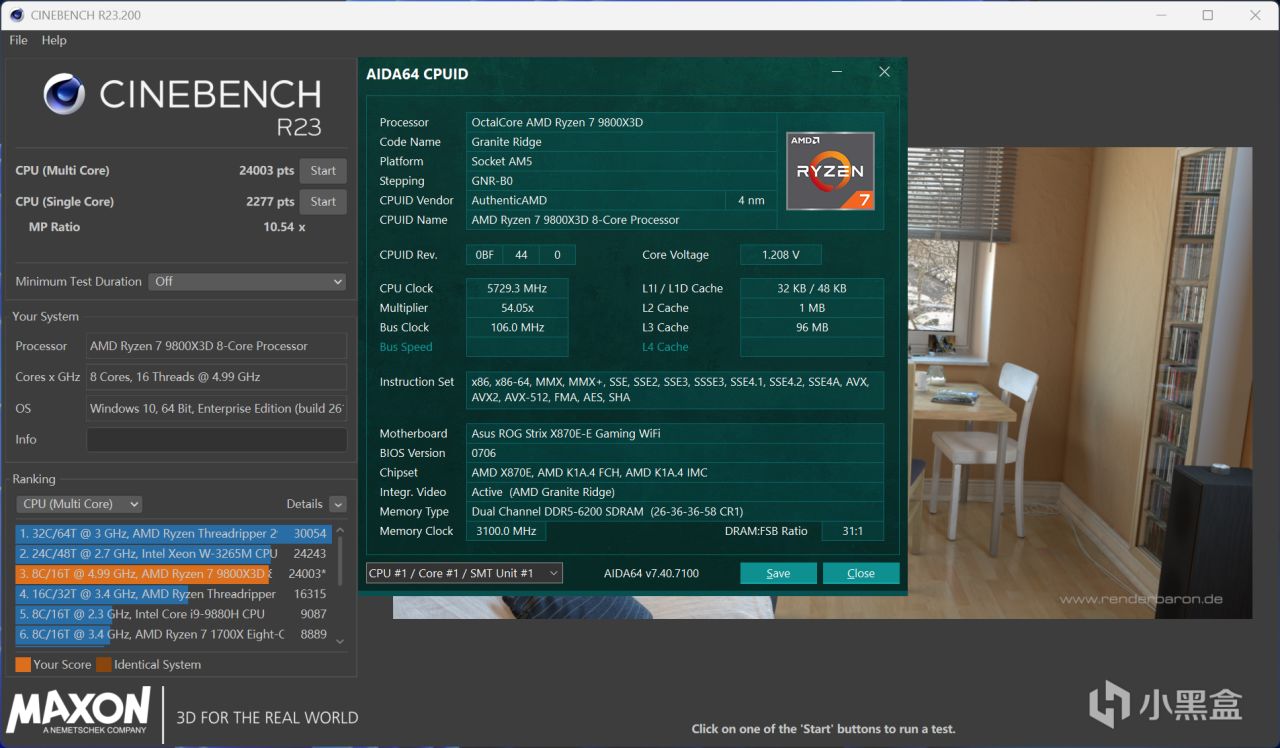 CINBENCH R23,銳龍7 9800X3D eCLK 106 & PBO 2多核得分24003 pts,單核得分2277 pts