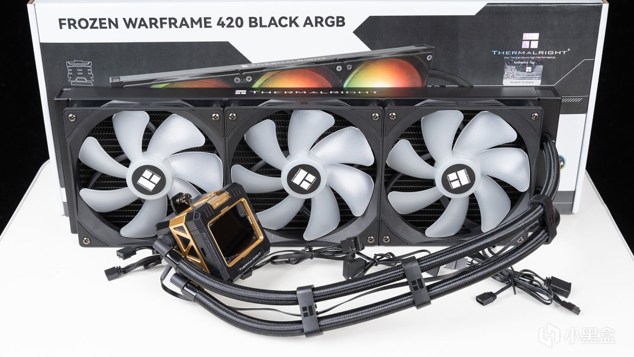 Curve Shaper功能和常說的Curve Optimier並不一樣,CS涵蓋溫度、頻率和電壓三者複雜關聯,自然CPU溫度是越低越好,所以這次也是破天荒爲9800X3D準備了來自利民的FROZEN WARFRAME 420 BLACK ARGB寒冰裝甲這款水冷,它是市面上爲數不多的高性價比420水冷產品。