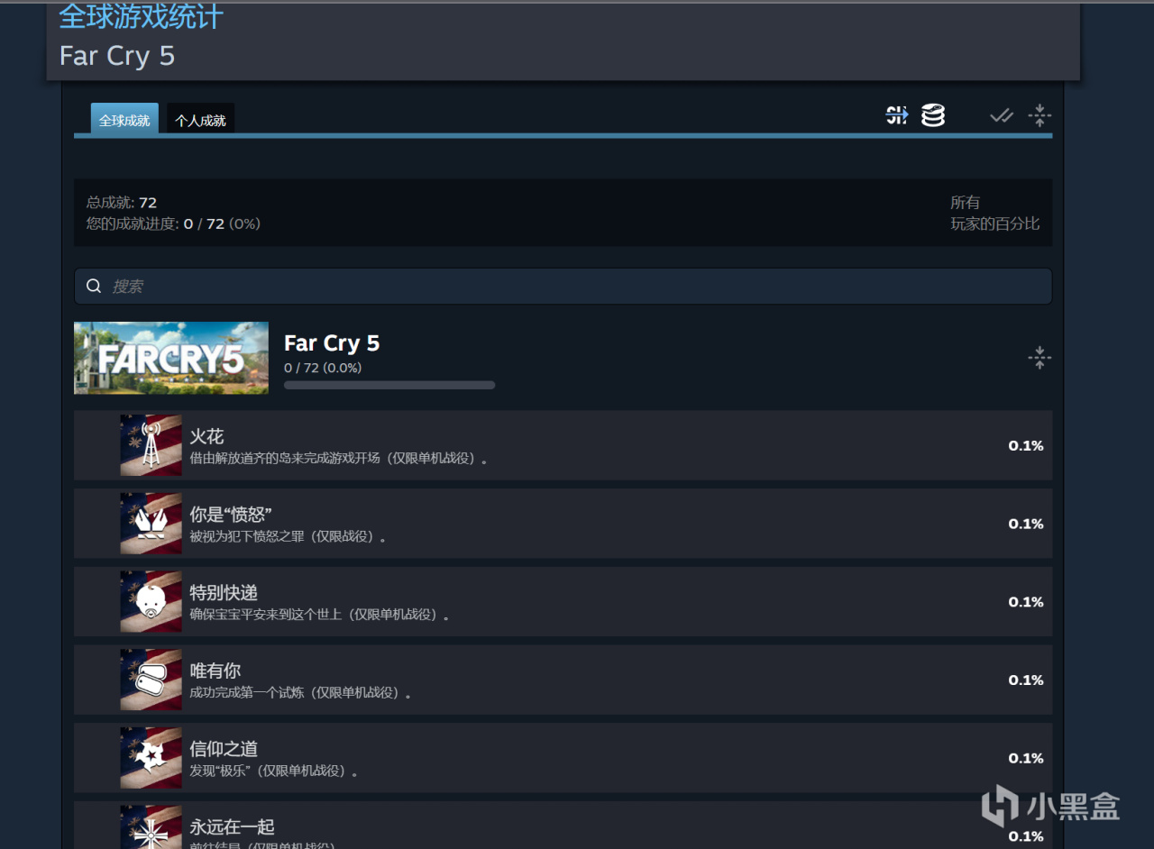 《孤岛惊魂5》Steam 成就链接地址:https://steamcommunity.com/stats/552520/achievements