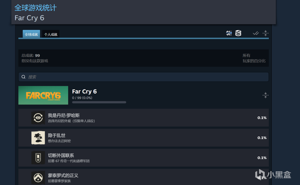 《孤岛惊魂6》Steam 成就链接地址:https://steamcommunity.com/stats/2369390/achievements