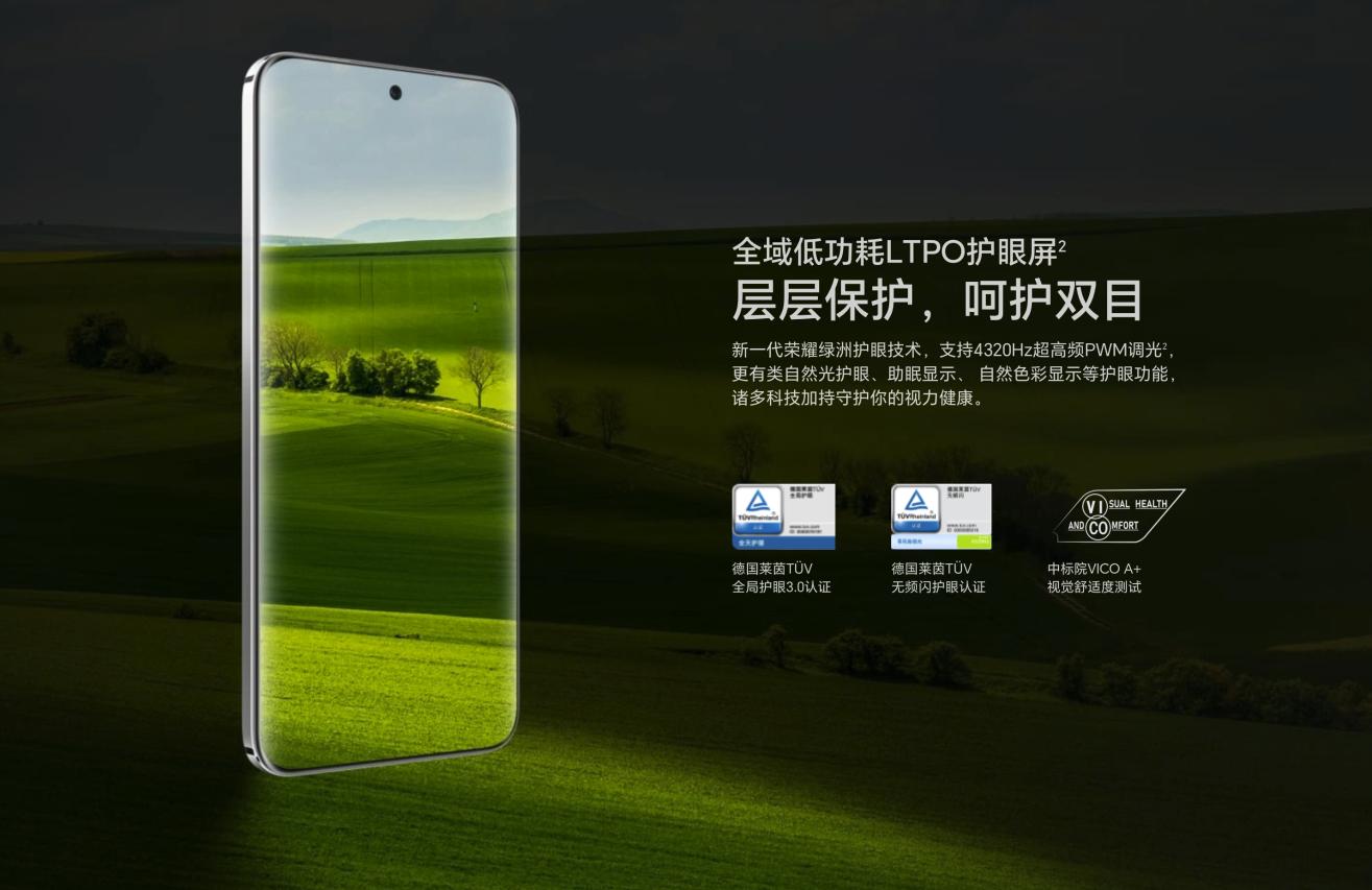 荣耀是最早做手机硬件级护眼的厂商。早在2020年发布的荣耀30 Pro+上,便搭载了1440Hz高频PWM调光,这也就意味着荣耀是第一个通过硬件方式提升屏幕护眼性的手机厂商。