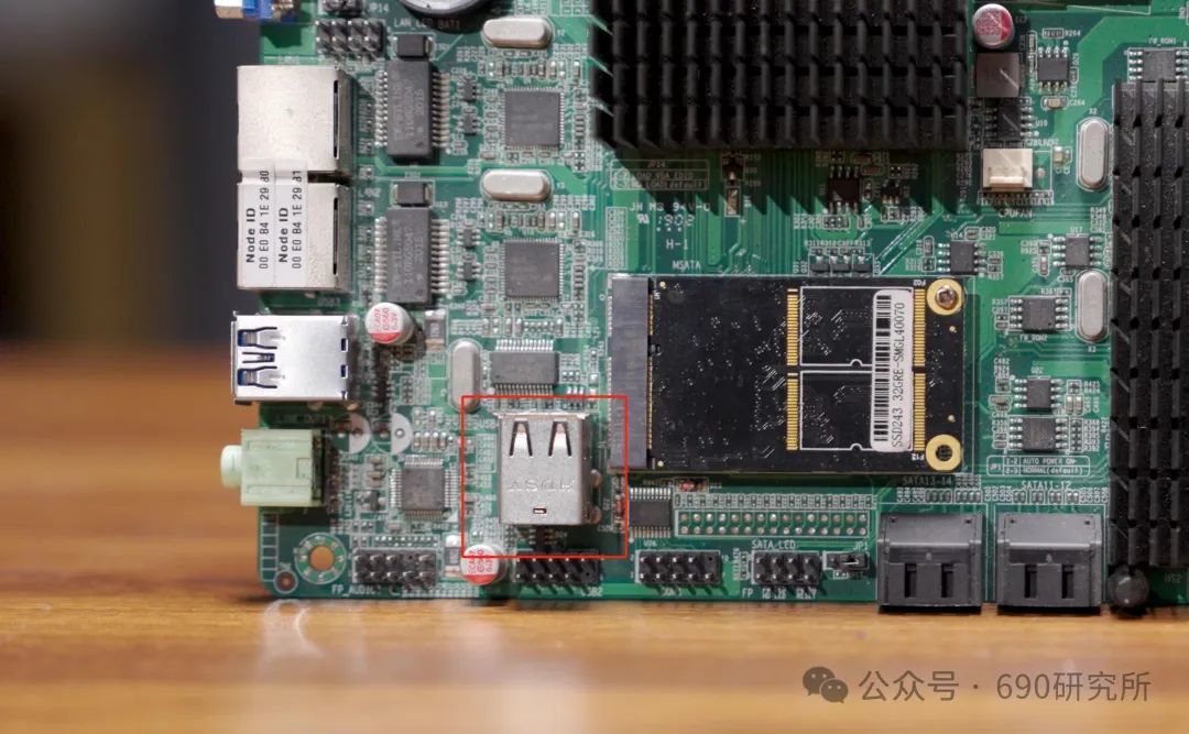 这里还有两个USB 2.0接口,可以插内置的引导盘,刷个黑群晖也是美滋滋。看这样子原本应该是插加密狗的,现在空在这里。
