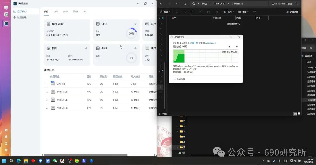 那肯定有小伙伴担心这块J1900能不能跑满千兆,那这里咱们也测试了下,大文件的传输跑个千兆网是没啥压力的。