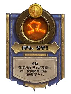 改动后:[被动] 在你消灭16个敌方随从后,获得萨弗拉斯。