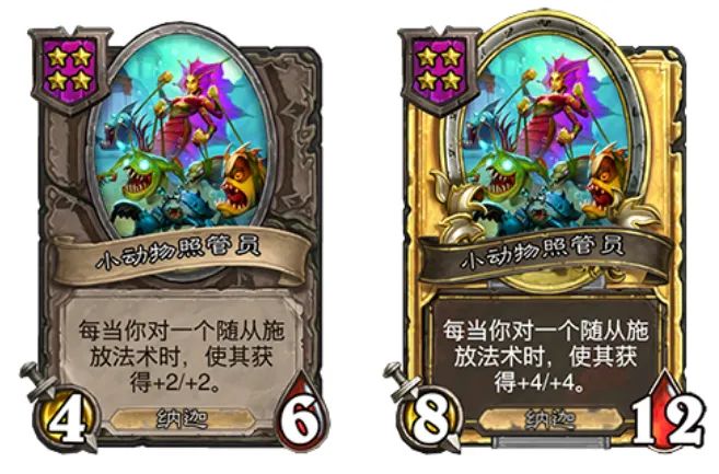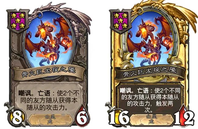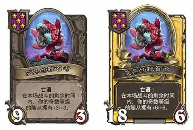 改动前:4/13。在一个友方亡语随从死亡后,使你的随从永久获得+2/+1。