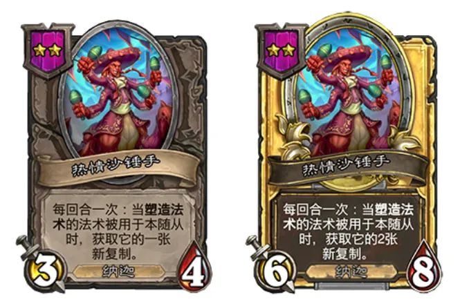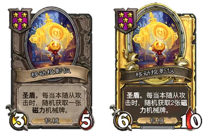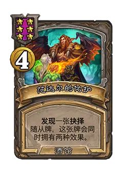 改动前:5/3。圣盾。每当你施放一个酒馆法术时,使你具有圣盾的随从获得+2攻击力。